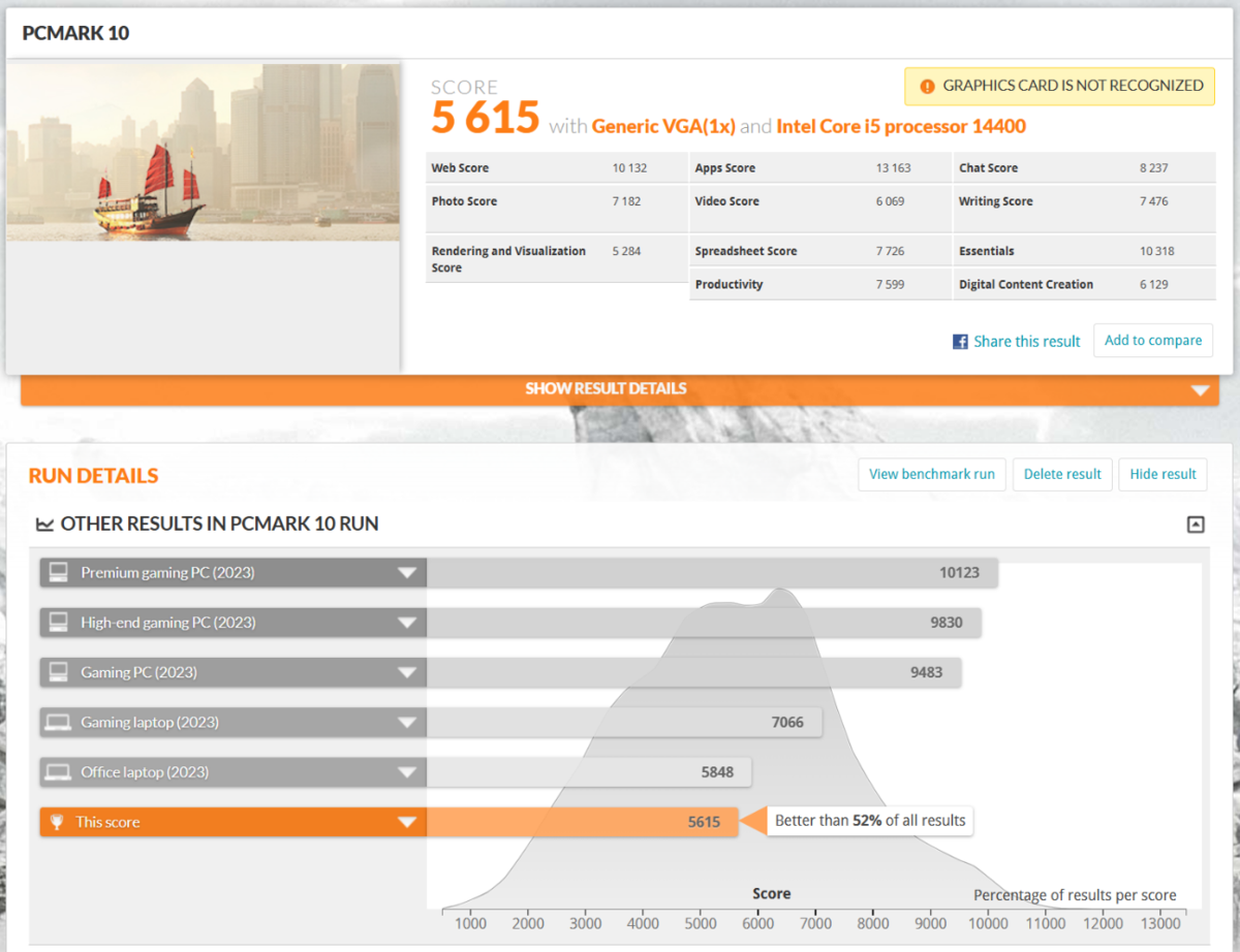 PCMark 10のスコアが5600オーバーで十分な性能を発揮