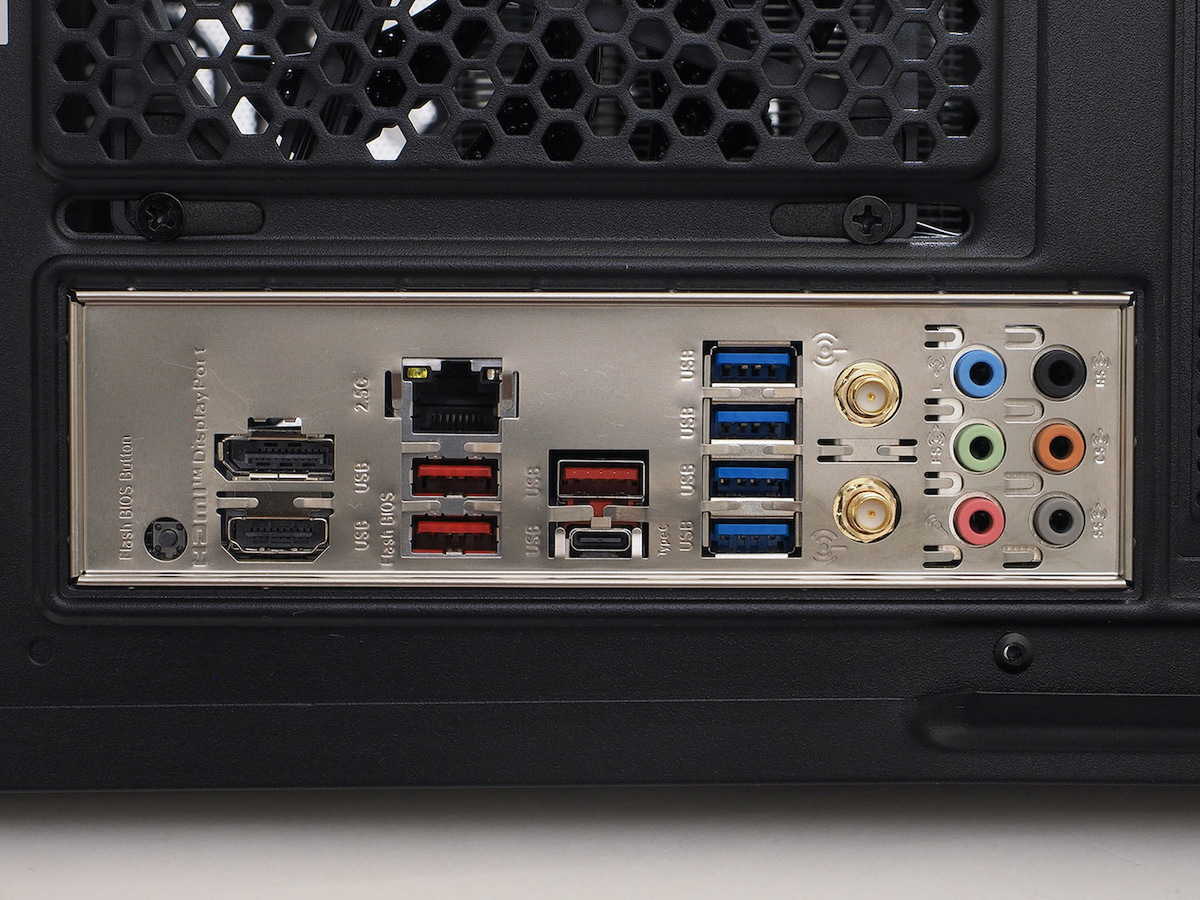 ゲーミングマザーボードとしては比較的安価なグレードであるが、USBは背面8ポート、前面3ポート。「Panoplia Powered by msi R7B65507TPM3D」では前面2ポート仕様になるが数としては十分だろう。背面USB Type-Cは20Gbpsに対応している。ほか、ネットワークは有線が2.5GbE、無線がWi-Fi 6Eといった仕様だ。