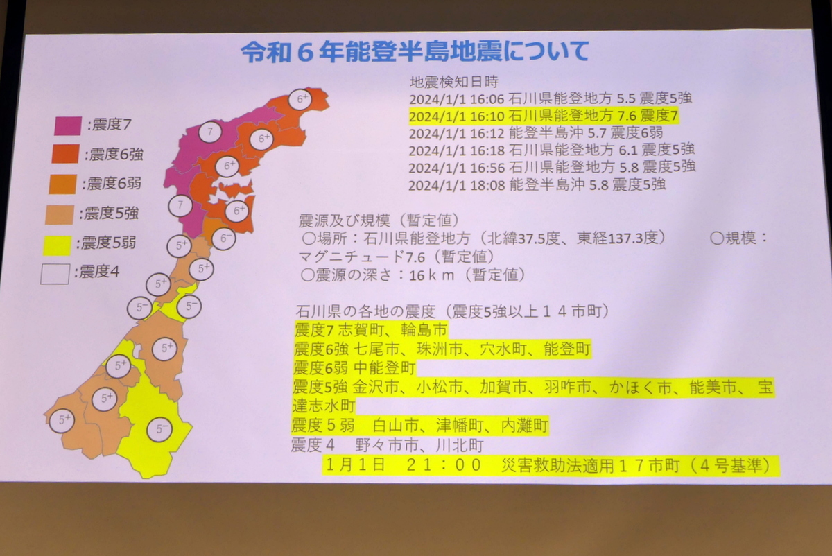 2024年の能登半島地震は、1月1日の16時10分に起こった震度7の地震が本震となるが、実際は4分前に震度5の地震が起こっていた。また、1月1日ということで、帰省していた人も多く、観光客とあわせると普段よりも人口が4割多い状態で震災を迎えたというのも特徴だった。「本震4分前の地震で、津波が来るといけないからと、外に出たことで、家の倒壊から免れた人もいた」とのことで、実は生死を分ける4分でもあったという。