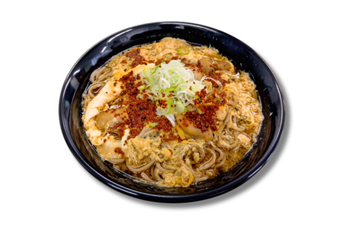 名代 富士そばは7店舗限定で、山梨県の“すりだね”とコラボした「旨辛すりだね親子そば・うどん」(680円)を11月1日より販売中です。