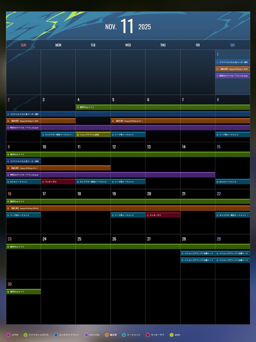 「マクドナルドの人気バーガー選挙」実施中。推しバーガーにぜひとも投票してみよう。また、今月は「E.本田」「A.K.I.」「ダルシム」の誕生祭を開催。キャラ限定・リーグ別などのトーナメントにも参加してみてはいかがだろうか。