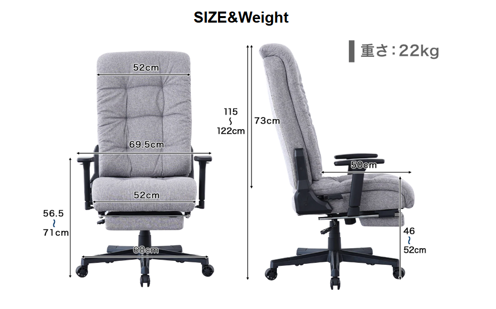 ただし、その重量があるからこそリクライニング時の安定感が抜群。倒してもグラつかず、ベッドのようにしっかり体を支えてくれます。キャスター付きなので一度設置してしまえば移動も簡単。最初の搬入さえクリアすれば、その後は快適そのものです。