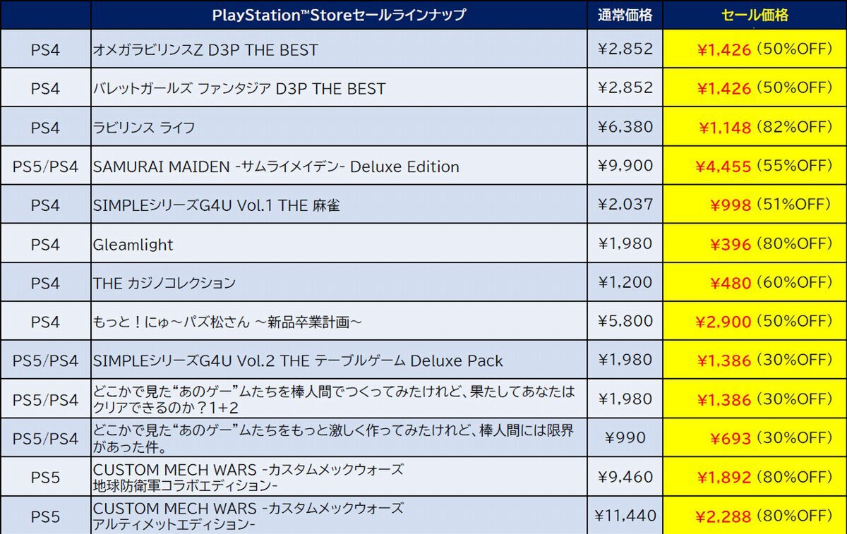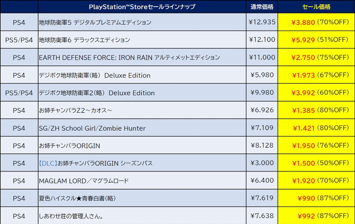 最大87%オフ!D3PがPS Storeの「11月のお買い得セール」への提供タイトルラインアップを公開