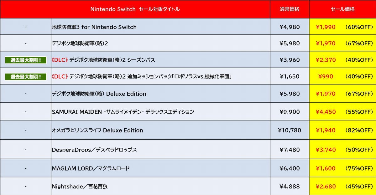 ディースリー・パブリッシャーは11月6日、同社のNintendo Switchダウンロードソフトを最大82%オフで購入できるニンテンドーeショップの「オータムセール第2弾」を開催。セール期間は、2025年11月19日まで。