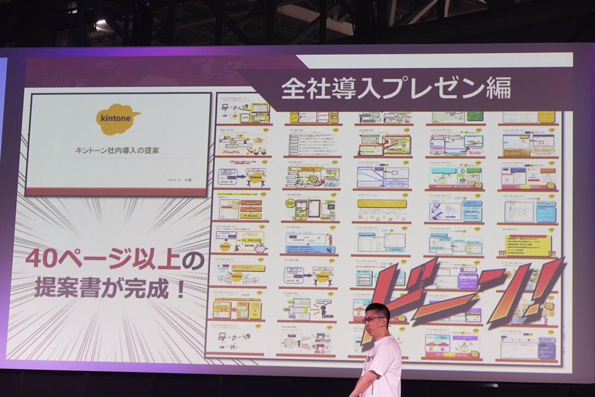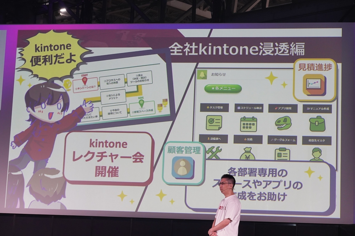 小田氏は、「これは、もうkintoneでどうにかするしかない」と全社導入を目指して、提案書を作成。kintoneがいかに設備部を変えたか、その熱意がこもりすぎた結果、提案書は40ページを超えた。経営陣へのプレゼンでは、様々な懸念も投げかけられるも、「もう準備できてます。設備部ではすでに使ってるんですよ」で説得。kintoneの全社導入が決定した瞬間だった。