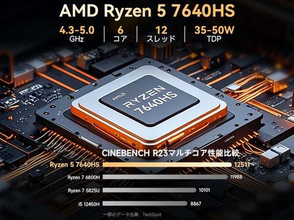 M6 Ultraは、AMDの「Ryzen 5 7640HS(Zen4、4nmプロセス)」を搭載している。TDPの調整に対応しており、用途に合わせた設定が可能だ。