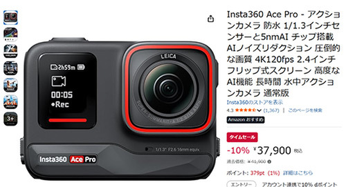 【10%オフ】AIチップ×ライカ画質!「Insta360 Ace Pro」アクションカメラがAmazonで37,900円に