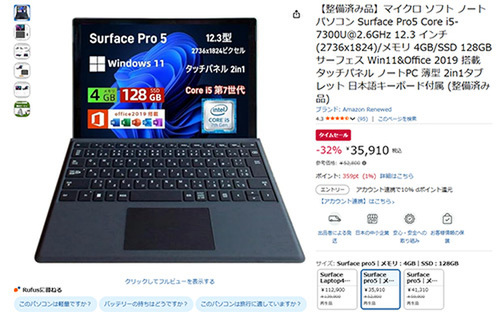 高性能2in1 PCをお得に手に入れるチャンス! MicrosoftのSurface Pro 5(整備済み品)が、Amazonセールに登場しました。