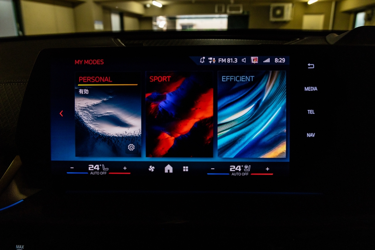 走行モードだけでなく室内環境なども変化する、My Modesを用意するのもBMWらしいところ。せっかくなのでSPORTにすると、突き上げは強めですが、引き締まったフットワークの良い走りが楽しめます。ほかにもリラックスとか色々なモードが用意されています。