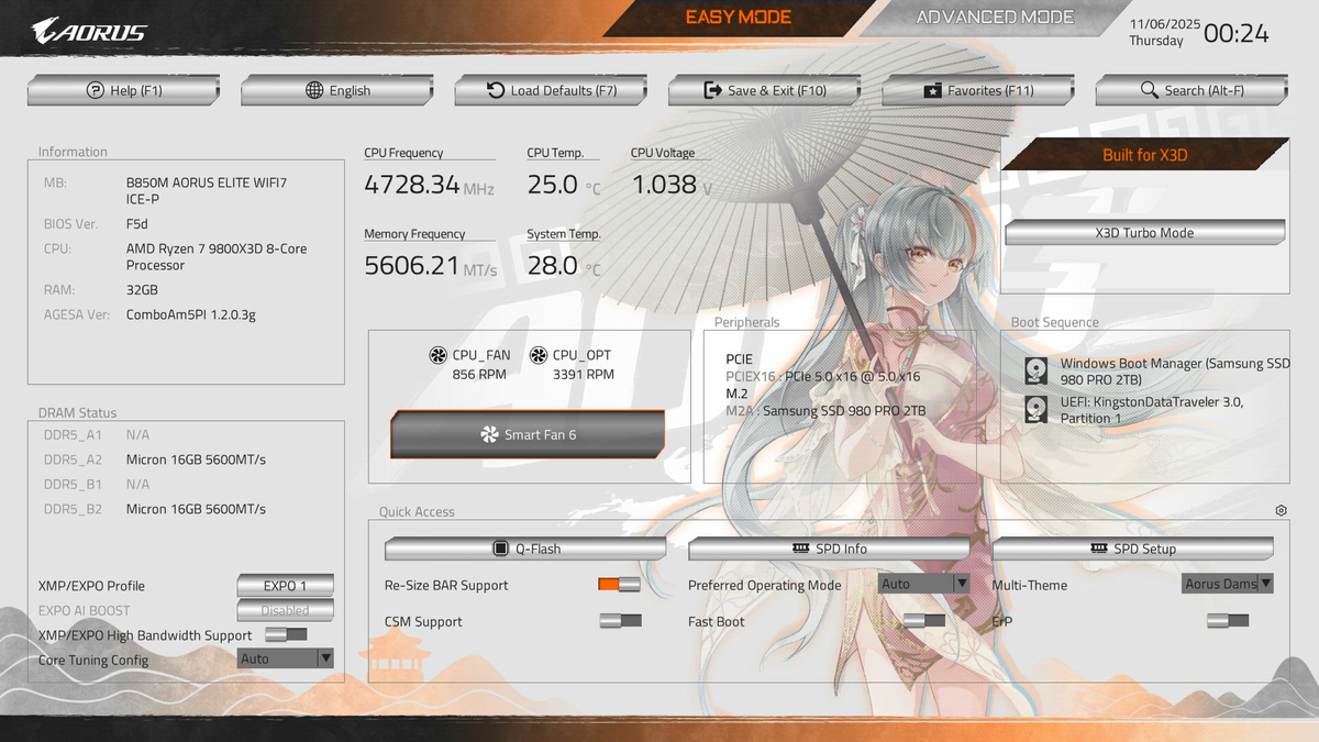 マザーボードの外観だけでなく、BIOS(UEFI)や、OS起動時に表示される起動ロゴ(ブートロゴ)も神鷹凛仕様になっているのがうれしいポイントだ。