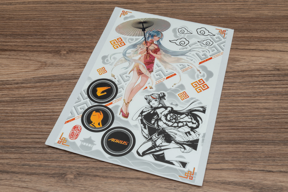 「B850M AORUS ELITE WIFI7 ICE-P」には、シールも付属している。今回は、そのシールを使って、神鷹凛仕様のホワイトコーディネートPCを組んでみた。