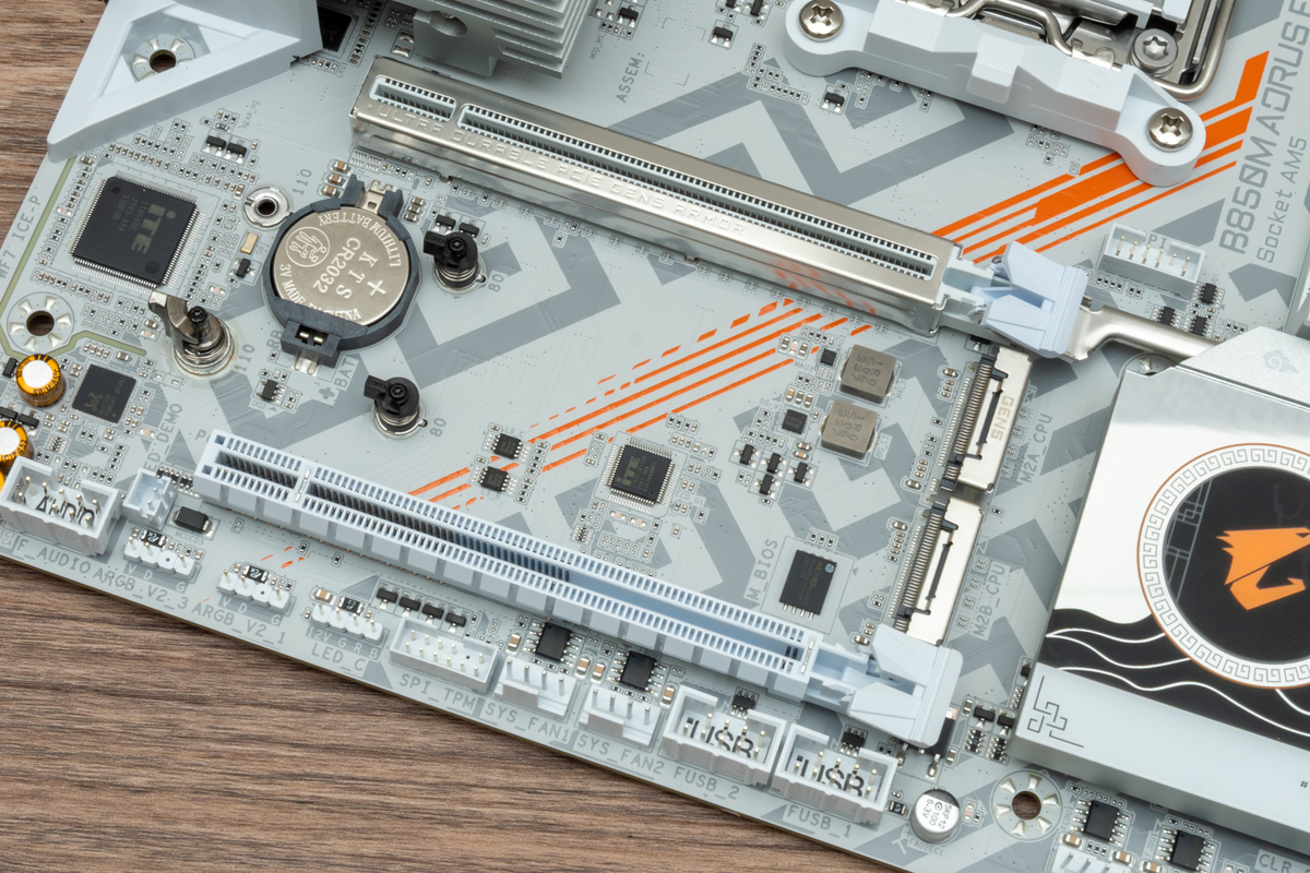 この神鷹凛仕様のマザーボードは、「B850M AORUS ELITE WIFI6E ICE」をベースにしており、16フェーズの電源回路設計や、PCIe 5.0×4ならびにPCIe4.0×4に対応するM.2拡張スロットの搭載など、基本のスペックは同じだが、無線通信機能は最新のWi-Fi 7とBluetooth 5.4に向上している。