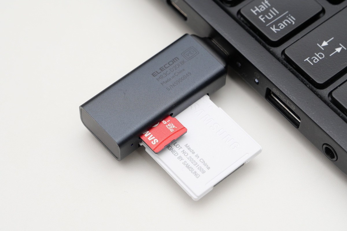 そのひとつが、エレコムのリーダーライター「MR3C-D20EBK」だ。実際に試してみたが、このリーダーライター1台で一方のmicroSD Expressカードから別のmicroSD Expressカードに問題なくデータをコピーできた。