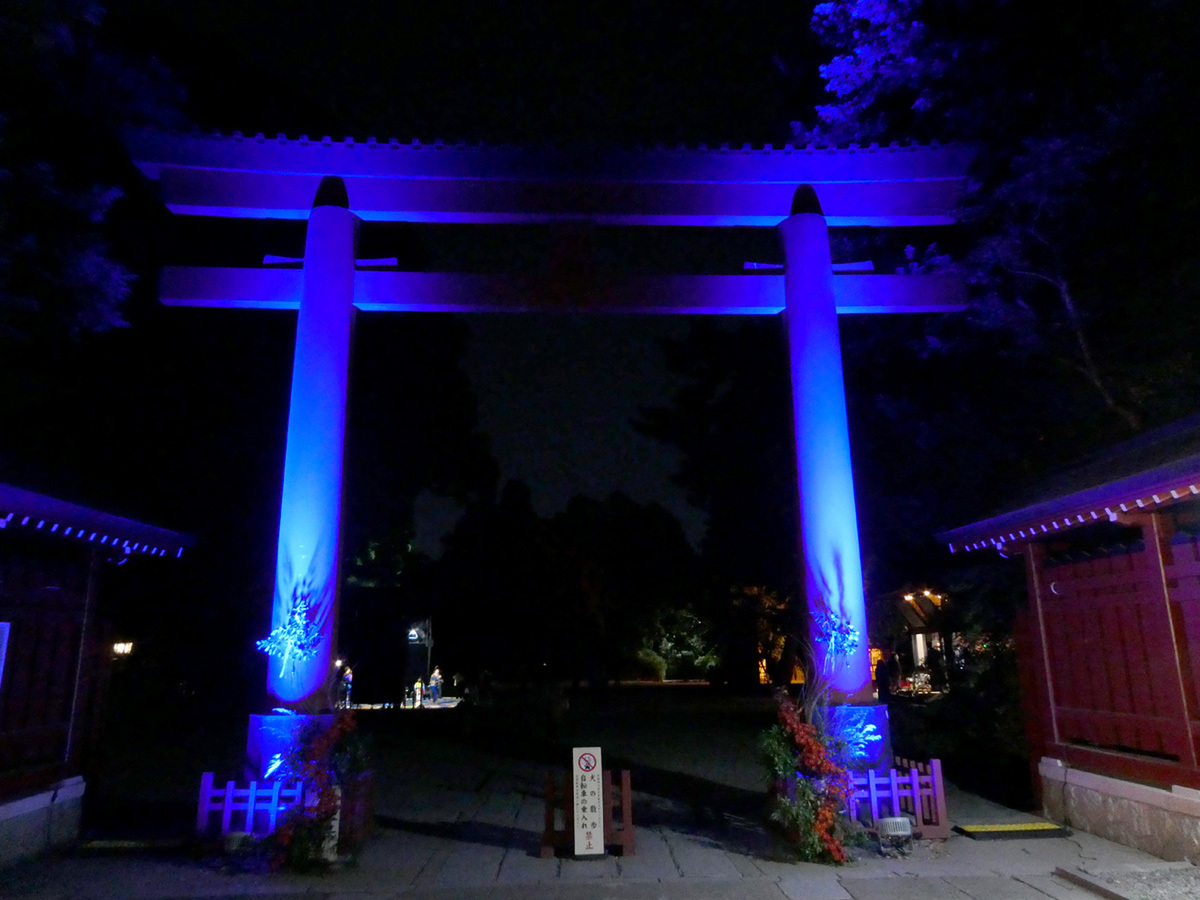プロジェクションマッピング「時結びの杜」は当然ながら夜のイベント。境内は暗い場所もあるので注意が必要。また、陽が落ちると気温が下がる季節なので、暖かい格好で来場することをお薦めする。本イベントは11月24日まで開催されている。