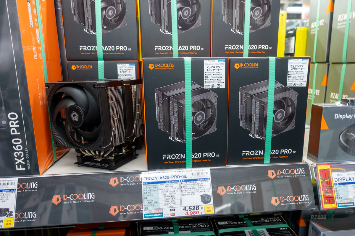 そのひとつが、ID-COOLINGのデュアルファン&ツインタワー型ヒートシンクを採用する「FROZN A620 PRO SE」だ。PCパーツショップ「TSUKUMO eX.」で、日々PCの組み立てを代行しているスタッフや、同店のCPUクーラーコーナーのスタッフも認める鉄板の空冷CPUクーラーなのだ。