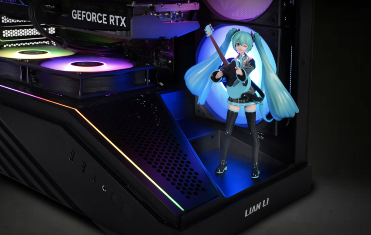 PCケースはLIAN LIの「VECTOR V100R」。色を黒と白から選択できます。このPCケースにはなんと、フィギュア展示用スペースがあります! お気に入りのフィギュアを入れれば、自分だけの推しPCの完成です。