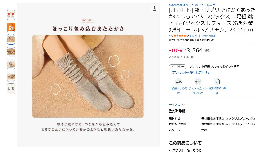 履くだけでこたつのようにあったかい、okamotoの「靴下サプリ まるでこたつソックス」