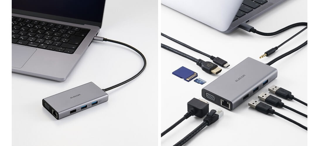 エレコム、VGAとHDMI対応の多機能USB Type-Cドッキングステーションを新発売