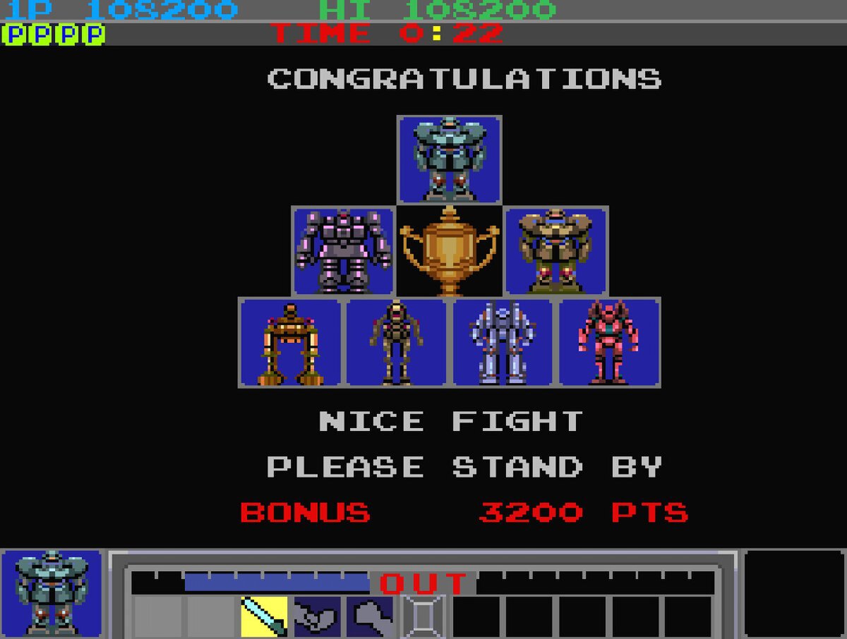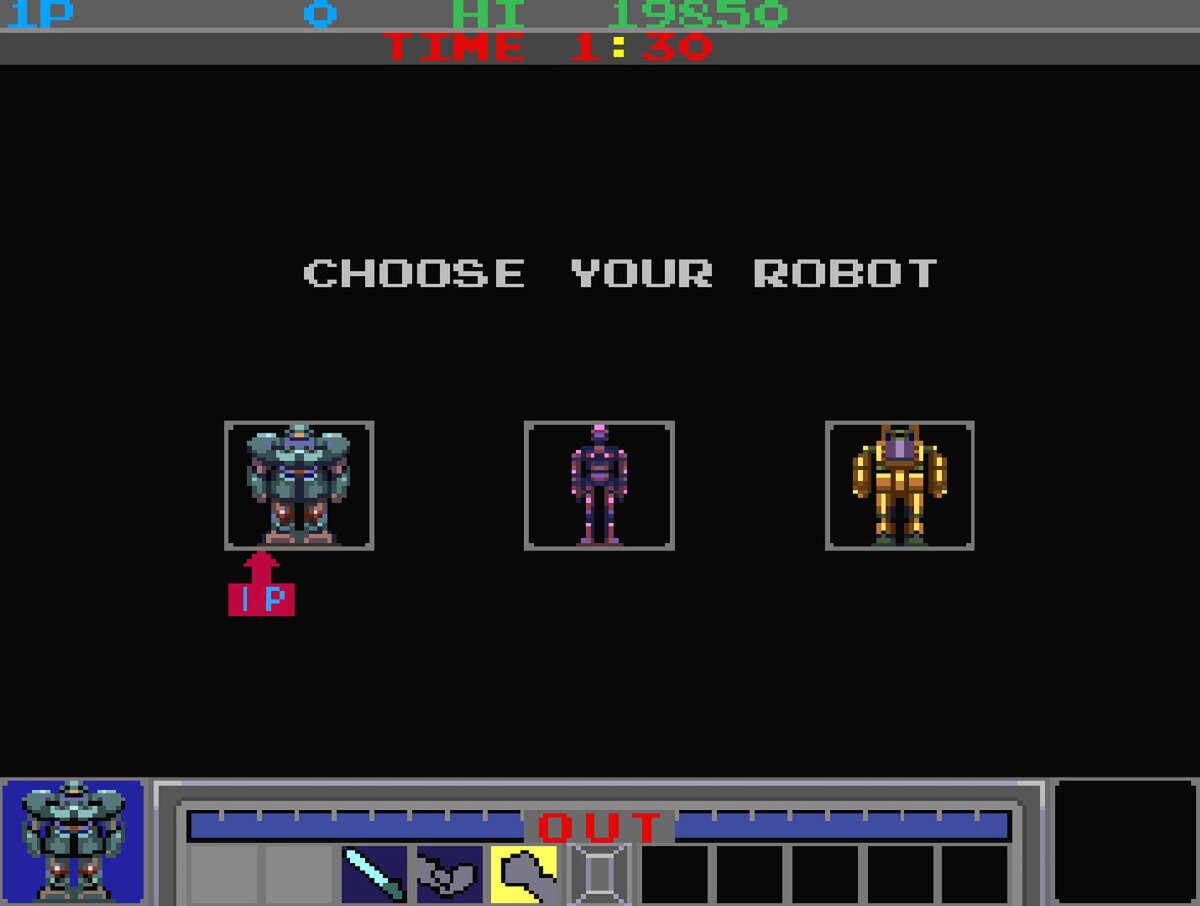 『ギャラクティックウォーリアーズ』は1985年にKONAMIから発売された対戦格闘ゲーム。宇宙暦HIT3万年を舞台に、銀河系人類の間で大流行している「ロボット格闘技」に参加して優勝を目指そう。