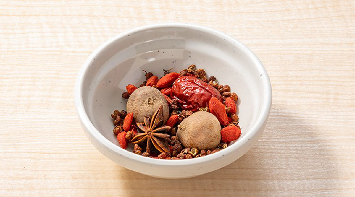 麻辣湯だしは、鶏と豚の白湯スープをベースに、花椒油がピリッとアクセントになった新しいだし。る香酢、麻辣油(マーラーユ)、麻辣醤(マーラージャン)だれなどを加えてマイルドからシビ辛まで、自分好みの辛さに調整できます。