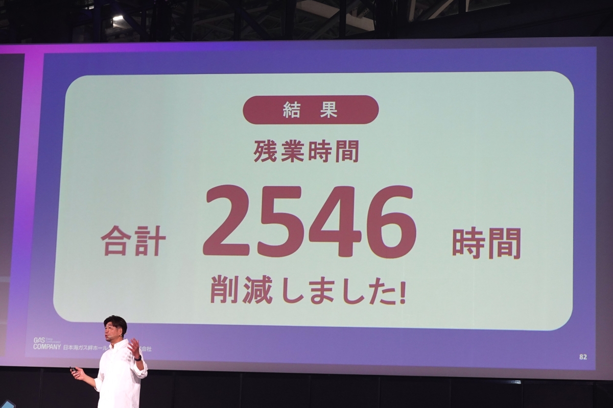 こうして、業務改善アプリ群や販売管理のkintone化、会議資料作成の自動化によって、1日3分の残業削減の目標を達成。最終的には、1日11分となる年間「2546時間の残業削減」にまで到達した。こうして大きな成果を生み出したことで、グループ全体にkintoneの評判が広がり、2023年には10名だったkintoneのユーザー数も、今や250名を超えている。