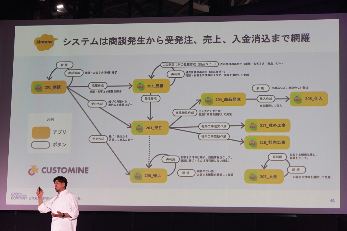 こうしてプロジェクトは再び動き出し、本丸である販売管理のkintone化に着手。社員だけで高額なパッケージシステムに匹敵する販売管理アプリを作り上げた。