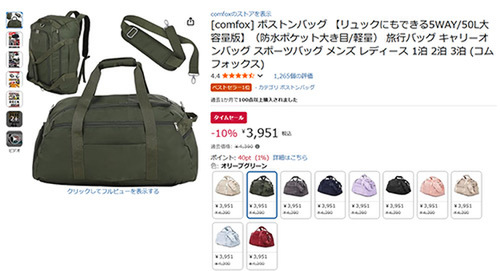 旅行やジム通い、出張、修学旅行まで幅広く使える、岡山発ブランド「comfox(コムフォックス)」の人気ボストンバッグ「リュックにもできる5WAY/50L大容量版」が、Amazonタイムセールに登場です。
