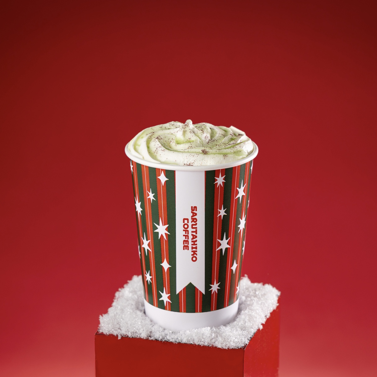 ホワイトチョコレートのミルキーな甘さに、抹茶の香りと心地よい苦みが調和し、ビスケットのサクサク食感とスパイスがアクセントを添える一杯。もみの木を模ったチョコレートをトッピングし、見た目にもクリスマス気分を楽しめるよう仕上がっている。