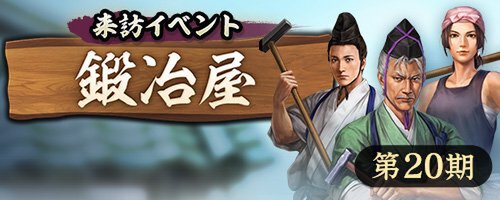 「来訪イベント」は、フィールドに現れる「来訪者」からの依頼達成を目指すイベント。来訪イベント 第20期「鍛冶屋」では「来訪者」として「刀鍛冶」「鎧鍛冶」がフィールドに現れる。