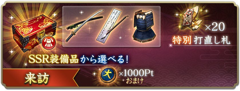 また、鍛冶屋来訪時のみの販売品として、「特別打直し札」や「SSR装備品箱・鍛冶屋2」などが入った「来訪パック・装備品」を販売。