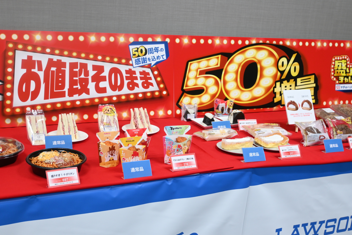 「盛りすぎチャレンジ」は2023年2月の初開催を皮切りに、2024年・2025年は2月と6月の年2回で実施。当初は“47都道府県”にかけた47%増量でしたが、今年6月にはローソン50周年に合わせて“50%増量”にパワーアップし、話題を集めました。これまでの開催の反響としては、客数が前年同日比105%、新規来店客比率が約12%になるなど(5回の平均)、非常に高い支持を得ているといいます。