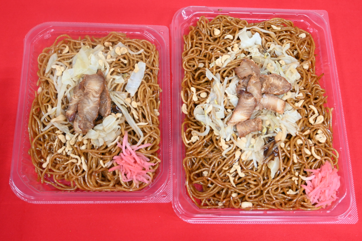 今回の開催でも同企画でトップクラスの人気を誇る「盛りすぎ!プレミアムロールケーキ」をはじめ、従来品「大盛ソース焼そば」をさらに50%増量させた「盛りすぎ!ソース焼そば」も登場します。焼そばは総重量がなんと550gほどあるそうですよ。