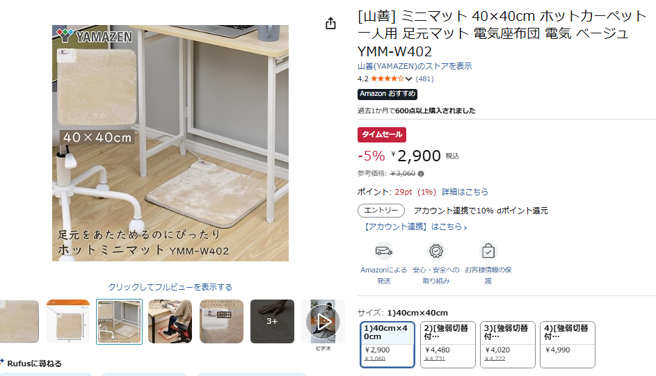 勉強中、在宅ワーク中の足元が寒い!そんな時に役立つ「山善のホットミニマット」が5%OFFに!