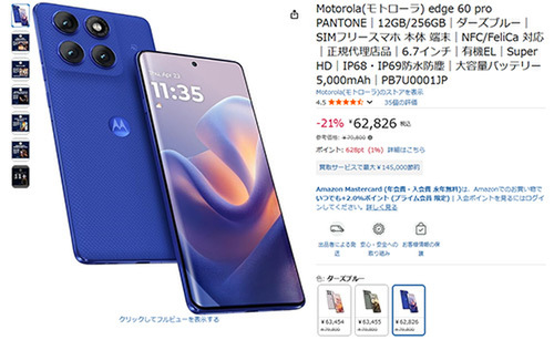 充電時間と耐久性の常識を変える、MotorolaのSIMフリースマホ「motorola edge 60 pro PANTONE」が、Amazonで販売中です。