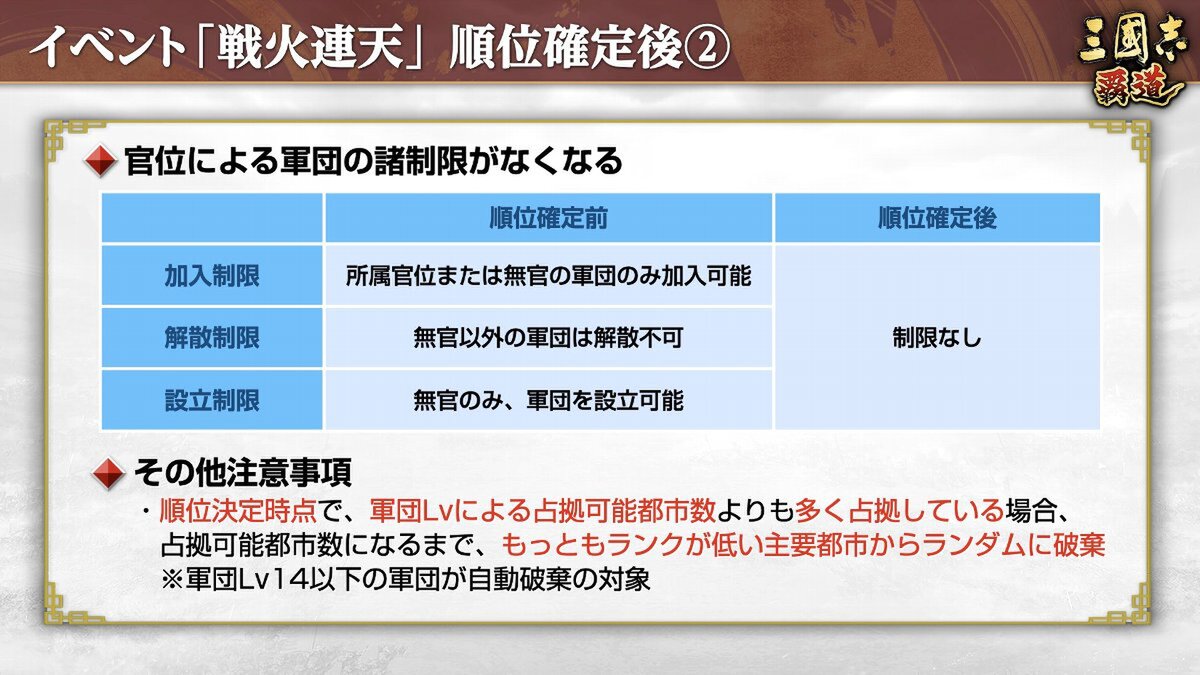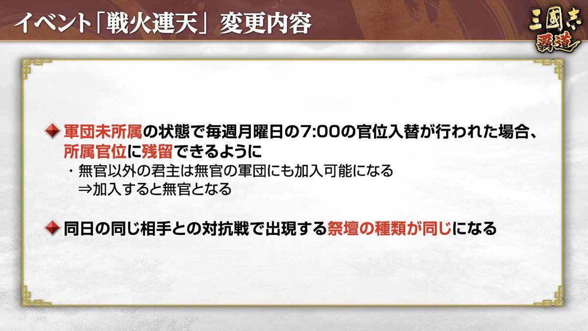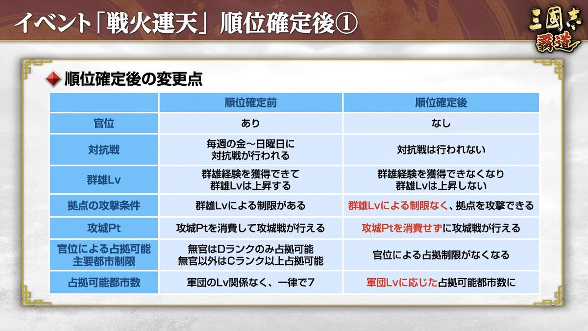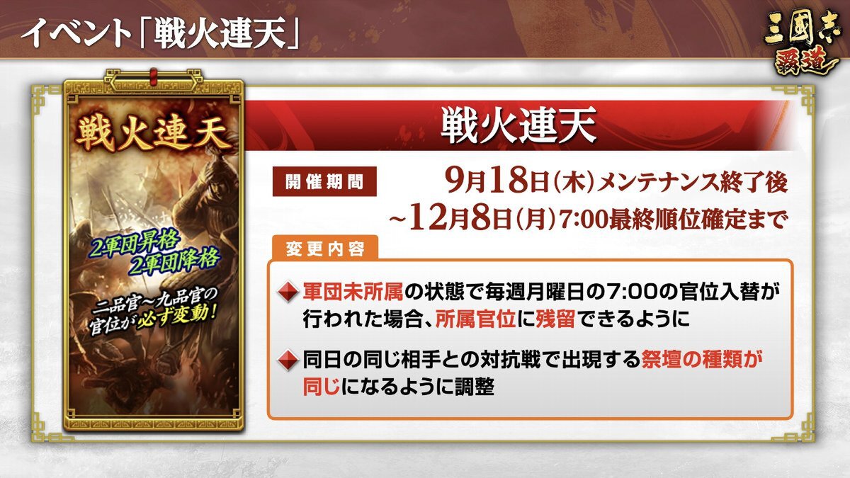 2025年11月13日より、長期イベント「戦火連天」のルールが一部調整された。