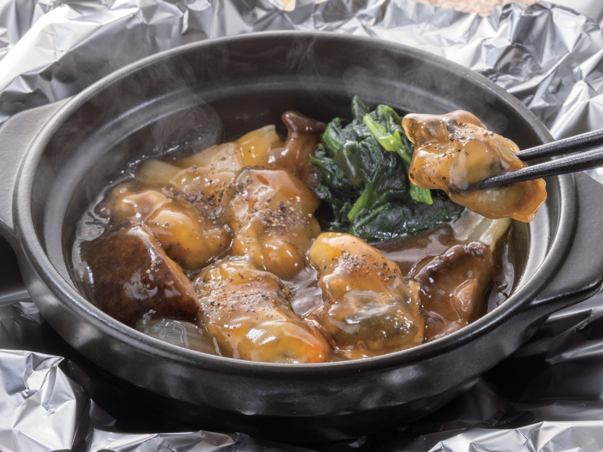 オイスターベースの餡に揚げた牡蠣を合わせ、ホイルを開いた瞬間に広がる香りが魅力です。