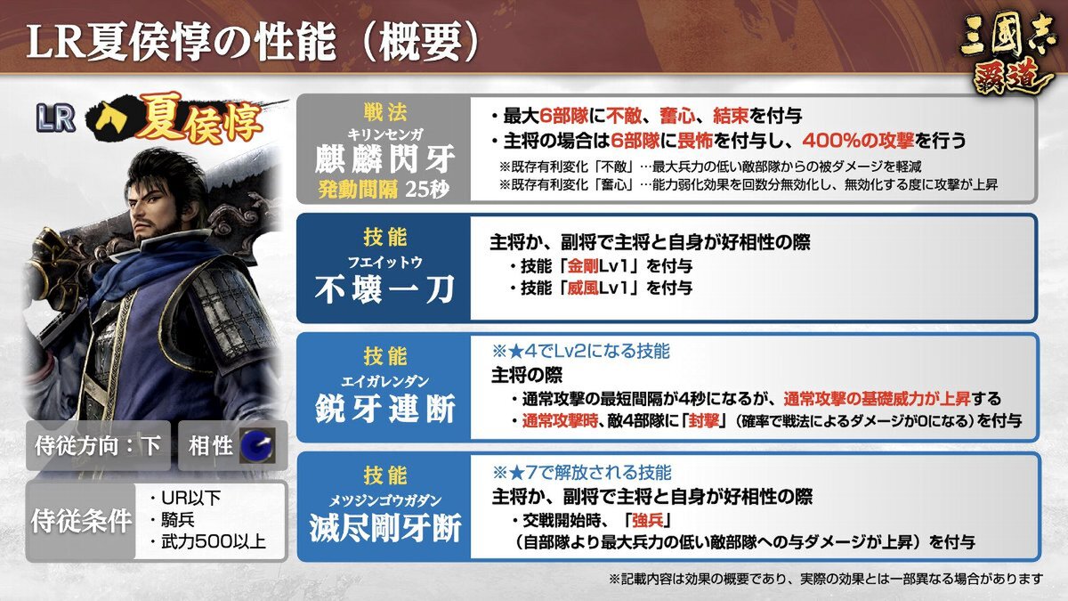 LR夏侯惇は、強力な通常攻撃に加え、戦法で最大6部隊に強化効果を与えることができる騎兵武将。
