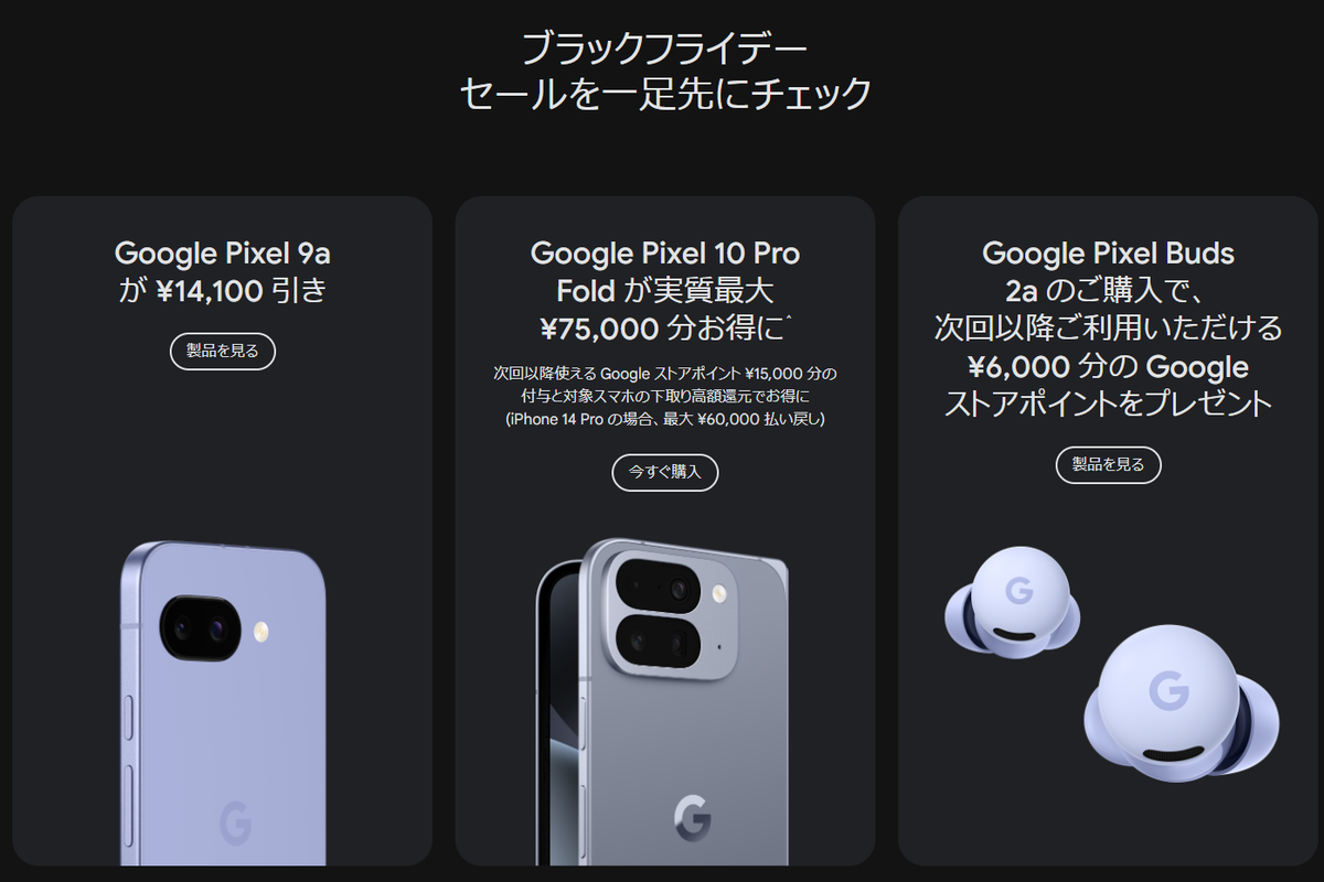 GoogleストアがブラックフライデーのPixelセール情報を公開