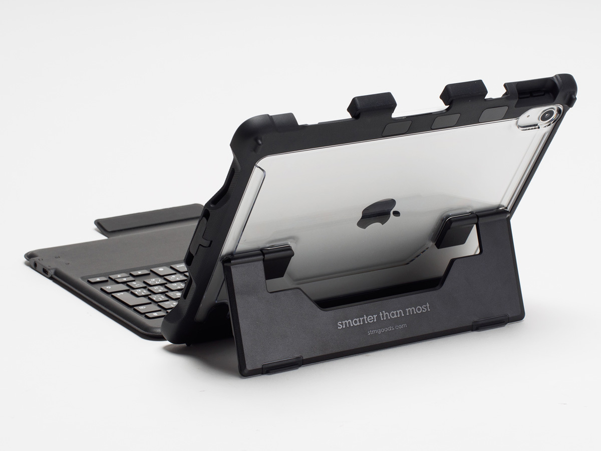 日本市場にも投入されたキーボード一体型ケース「STM Dux」は、教育市場を想定したiPad用端末ケースで、第10世代iPadとA16チップ搭載iPadに対応している。