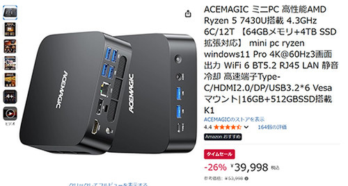 【タイムセール】高性能ミニPC「ACEMAGIC Kron Mini K1」Ryzen 5 7430U(6コア12スレッド/最大4.3GHz)登場!
