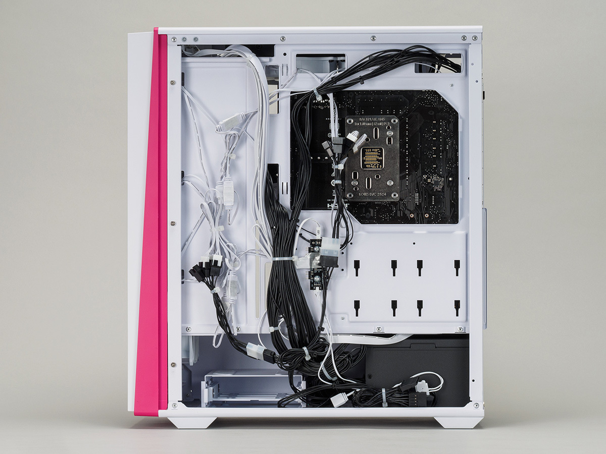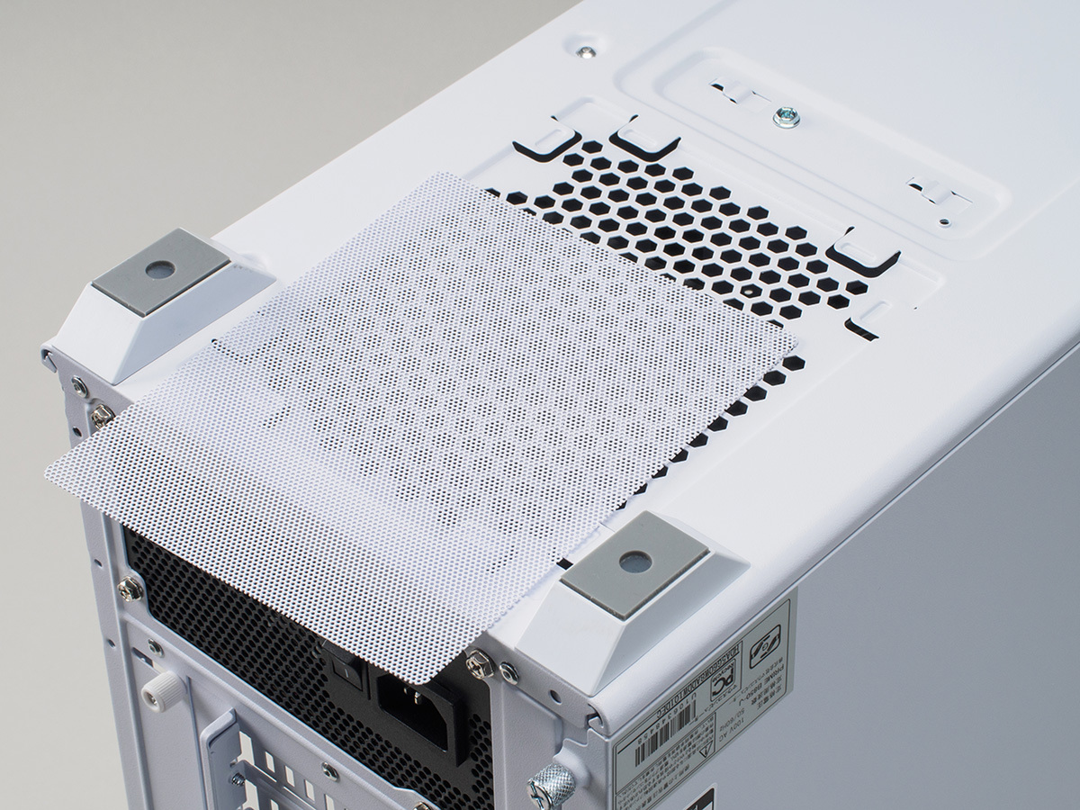エアフローは、フロントのメッシュパネル部分から取り入れた空気を上面と背面から排出する仕組み。ケース内に空気の流れを阻害するケーブル類がないこともあって冷却効率はかなり高いようで、ベンチマークなどで高い負荷をかけた場合でも動作は安定していた。