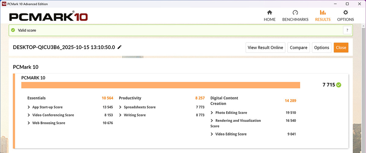 まず、PCの総合的なパフォーマンスをチェックするPCMark 10を試してみたところ、次のようになった。