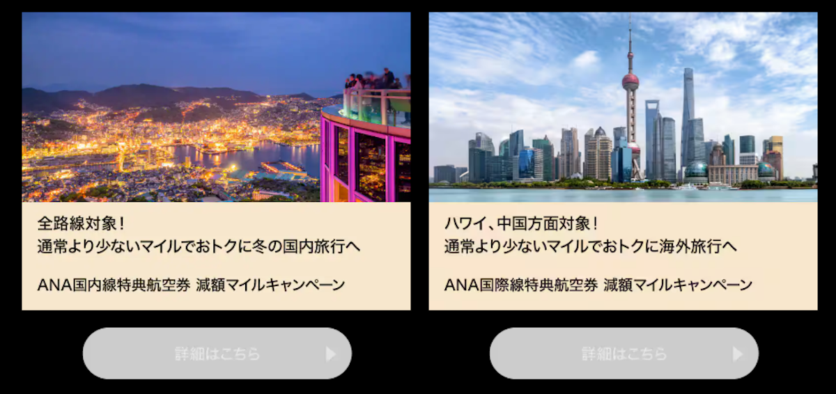 ANAのブラックフライデーでの注目は、マイレージを使った特典航空券での発券です。特典航空券減額キャンペーンが実施され、国内線は全路線が対象(搭乗期間:2026年1月8日から2月28日)。国際線はハワイ路線(搭乗期間:2026年1月13日~4月23日/対象外期間あり)、中国方面の一部路線(搭乗期間:2025年12月5日~2026年4月28日/対象外期間あり)が対象となっています。