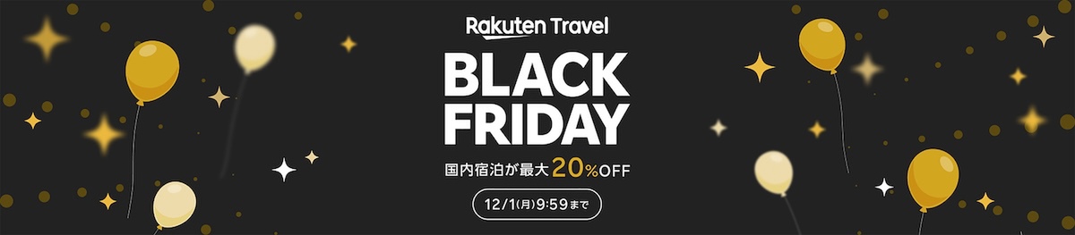 今年のブラックフライデーでセールを初開催するのが楽天トラベル。11月19日から12月1日の9時59分まで開催。国内外の宿泊やパッケージツアー、レンタカー、高速バス等のサービスを対象に、割引クーポンが配布されます。