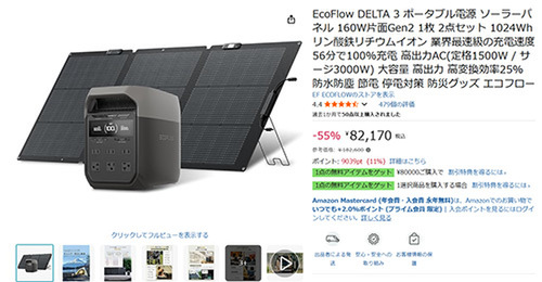 停電対策にもアウトドアにも使える、EcoFlow(エコフロー)のポータブル電源「DELTA 3」と160Wソーラーパネルのセットが、Amazonでセール販売中です。