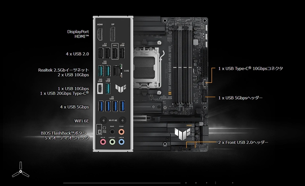 製品情報URL:https://www.asus.com/jp/motherboards-components/motherboards/tuf-gaming/tuf-gaming-b850m-plus-wifi/