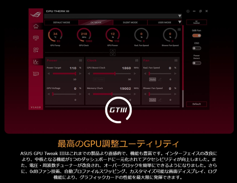 GPU調整ユーティリティーの「GPU TWEAK III」によって、最大3080MHzの動作クロックを実現しているなど、ゲーミングパフォーマンスの高さにも期待が持てる。この機会にゲーミングPCを組みたいという人で、なるべく安価に高パフォーマンスなマシンを目指すなら、このビデオカードは満足度の高い買い物になるだろう。