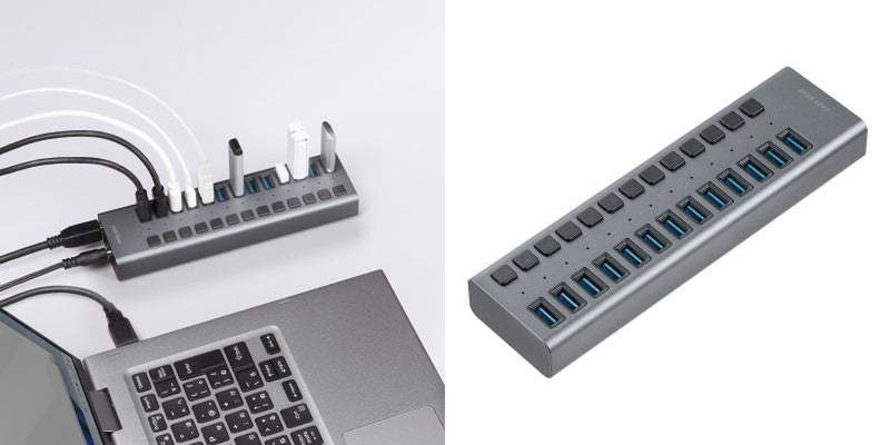 周辺機器の大量接続に対応する13ポートUSBハブ「400-HUBA50GM」登場