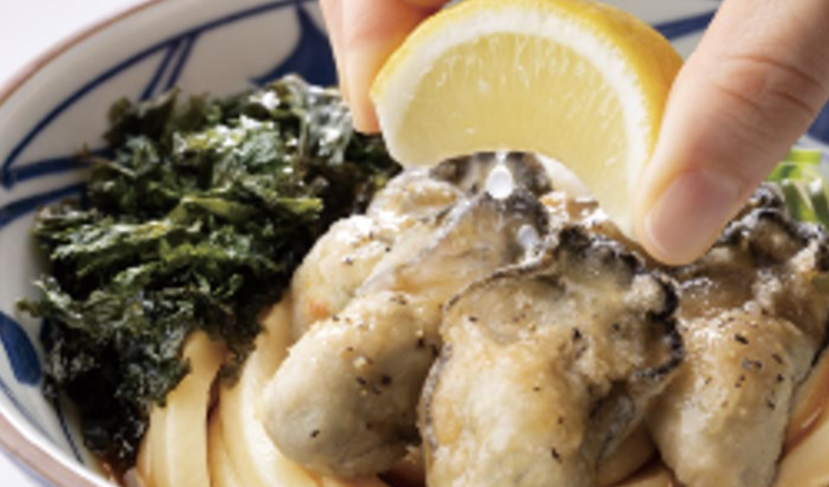 讃岐うどんチェーン 丸亀製麺は「こく旨 牡蠣バターぶっかけうどん」を11月25日よりショッピングセンターやテナント店を中心に期間限定で販売します。並890円、大1070円、得1250円。