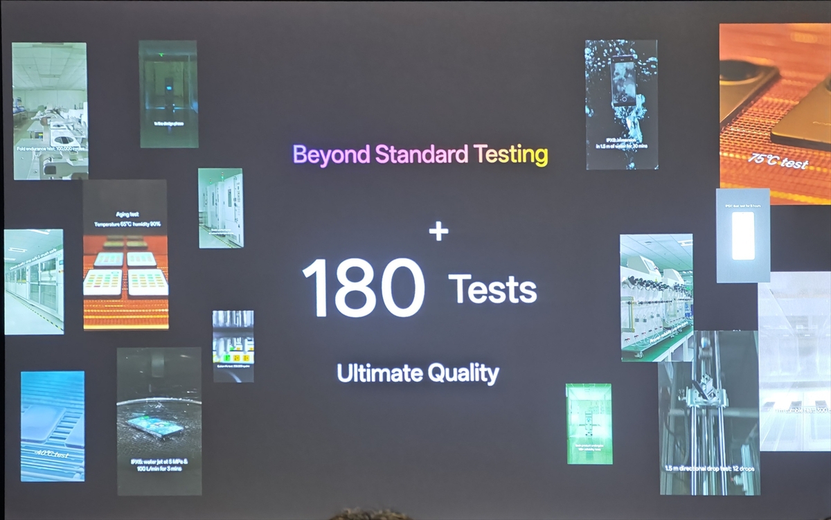 OPPOのハードウェアは、「標準テストを超越する」ことを目標に、過酷な信頼性テストを受けています。このテストは180以上のテスト項目で構成されており、究極の品質(Ultimate Quality)を目指しています。
